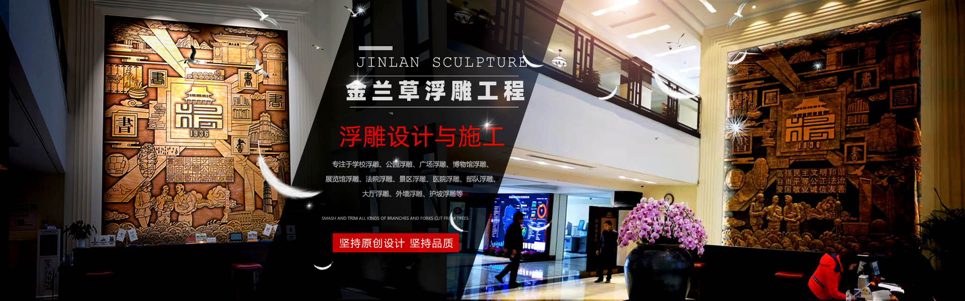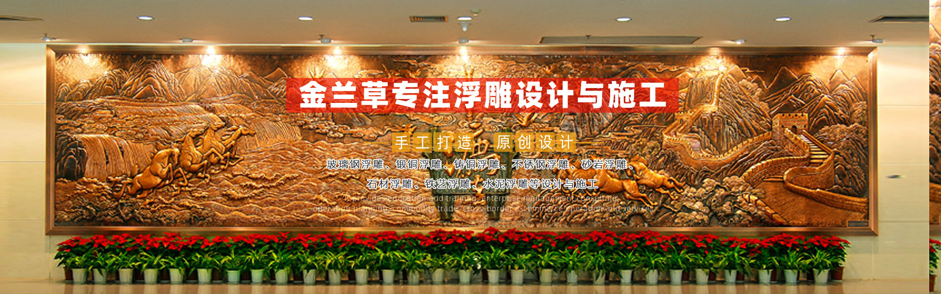 查看更多產(chǎn)品 + 電話:15978409299金蘭草浮雕是一家專業(yè)的玻璃鋼浮雕、鍛銅浮雕、鑄銅浮雕、不銹鋼浮雕、砂巖浮雕、石材浮雕、鐵藝浮雕、水泥浮雕等設(shè)計與施工的雕塑藝術(shù)企業(yè),專注于學(xué)校浮雕、公園浮雕、廣場浮雕、博物館浮雕、展覽館浮雕、法院浮雕、景區(qū)浮雕、醫(yī)院浮雕、部隊浮雕、大廳浮雕、外墻浮雕、護坡浮雕等,服務(wù)社會,為廣大業(yè)主朋友們設(shè)計制作出精品浮雕。企業(yè)自成立以來,一直致力于高水準(zhǔn)浮雕的設(shè)計與施工,真心的服務(wù),力求讓每一位客戶滿意。多年來,公司服務(wù)全國,業(yè)績遍布各地,得到眾多客戶的肯定。 公司秉承對客戶負(fù)責(zé)的原則,堅持原創(chuàng)設(shè)計,堅持品質(zhì),堅持每一件浮雕作品不僅僅要打動客戶,更要打動自己。讓客戶放心,對自己負(fù)責(zé),是公司始終堅持的方針。 展望未來,金蘭浮雕將以更加開放的胸懷迎接發(fā)展中的挑戰(zhàn)和機遇,“開拓創(chuàng)新,合作共贏,追求卓越”,與社會各界朋友一起攜手共創(chuàng)輝煌! 公司自成立以來,一直致力于高水準(zhǔn)浮雕、雕塑、景觀設(shè)計與施工,真心的服務(wù),力求讓每一位客戶滿意。多年來,公司服務(wù)全國,業(yè)績遍布各地,得到眾多客戶的肯定。 公司秉承對客戶負(fù)責(zé)的原則,堅持原創(chuàng)設(shè)計,堅持品質(zhì),堅持每一件雕塑作品不僅僅要打動客戶,更要打動自己。讓客戶放心,對自己負(fù)責(zé),是公司始終堅持的方針。 展望未來,金蘭園林景觀將以更加開放的 ...